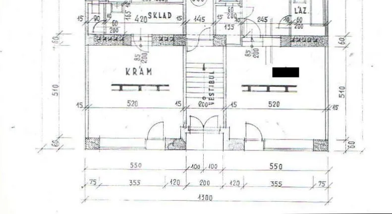 Disponuje prodejním prostorem cca 30 m2, dále skladem, malou kychyňkou a toaletou, dohromady 4 m2. Celková plocha nabízeného prostoru činí 34 m2.