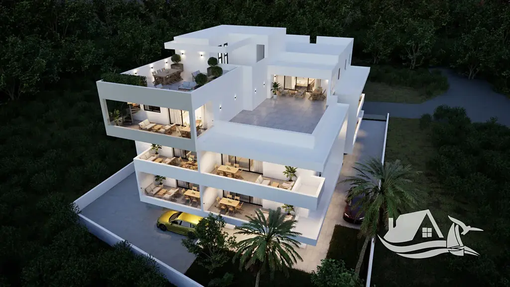 Velikosti apartmánů jsou 50–99 m² s prostornými balkony, terasami a u vybraných jednotek také střešní zahradou s panoramatickým výhledem na moře.