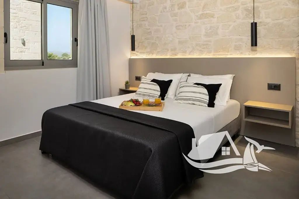 Pozemek je kompletně oplocen tradičními kamennými zdmi, vstup je zajištěn elektrickou branou, což podtrhuje exkluzivitu a bezpečnost nemovitosti. Vila je prodávána plně zařízená a připravená k okamžitému užívání. Moře je vzdáleno přibližně 1 000m, zatímco centrum města Chania je dostupné během krátké jízdy autem – ideální kombinace klidu a komfortu městské dostupnosti.