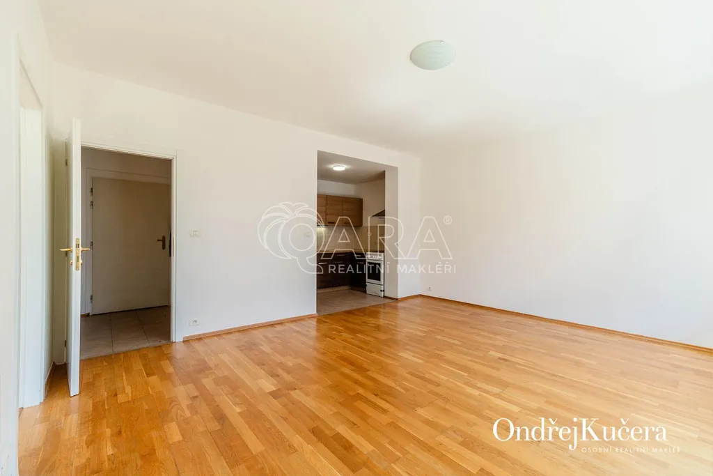Dispozice 2+kk s celkovou výměrou 66,25 m2 je řešena jednoduše a funkčně. Hlavní obytný prostor tvoří obývací pokoj s kuchyňským koutem, odkud se přímo vstupuje na prostorný balkon. Ten přirozeně rozšiřuje obytnou část bytu a v teplejších měsících může sloužit jako další místo pro práci nebo odpočinek. Samostatná ložnice nabízí dostatek soukromí i prostoru pro úložné řešení. Součástí bytu je dále koupelna s vanou a toaletou a praktická předsíň. K bytu náleží také sklep hned vedle garážového stání v domě, které je v této části Prahy praktickou výhodou.