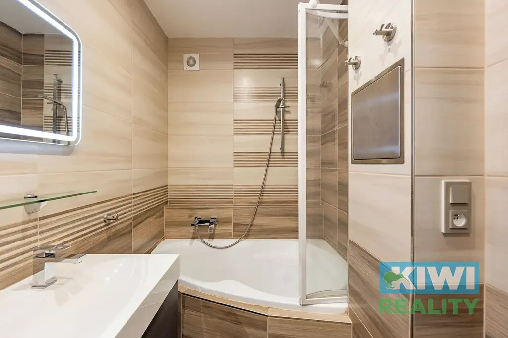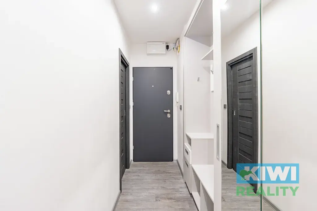 Rekonstrukce zahrnovala mimo jiné zděné jádro, novou elektroinstalaci, kvalitní vinylové podlahy (v koupelně a WC dlažba), nové rozvody i moderní prvky, které výrazně zvyšují komfort bydlení. Vstup do bytu zajišťují masivní bezpečnostní a protipožární dveře značky Delta. Velkým benefitem jsou interiérové dveře zasouvací do pouzder (systém JAP), díky kterým je prostor bytu maximálně využitý.