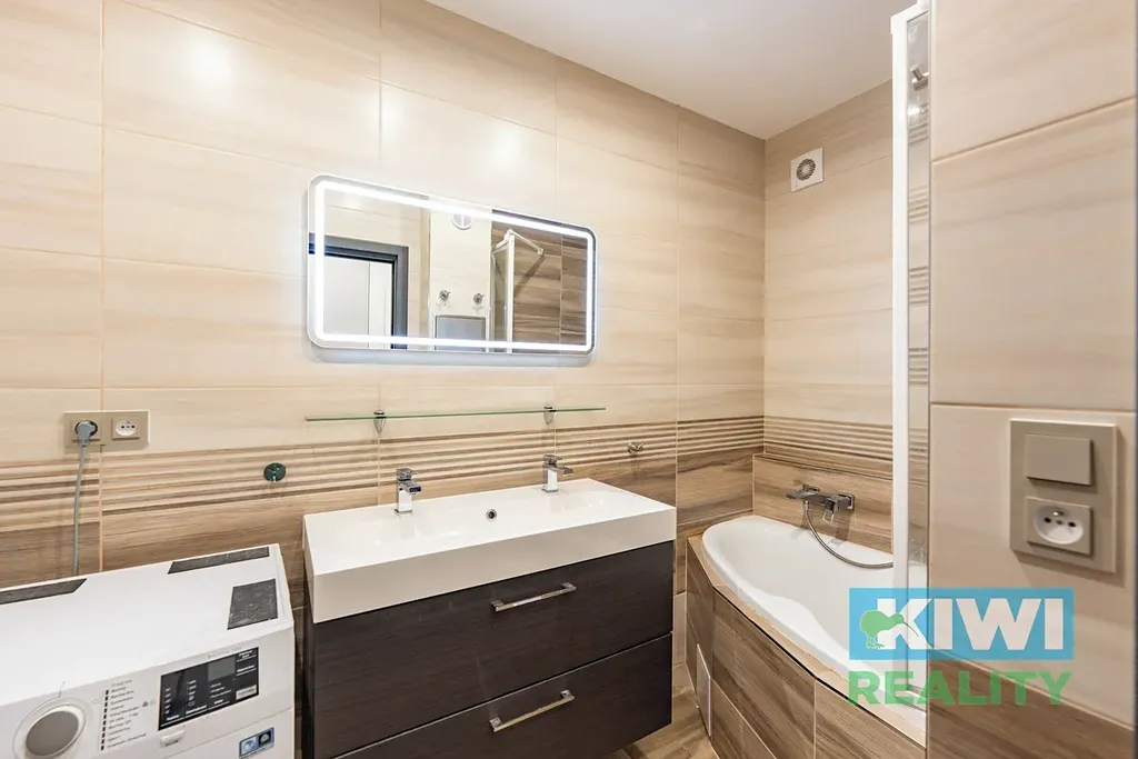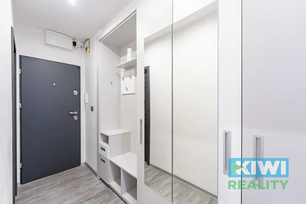 Byt byl řešen s důrazem na detail – oceníte například dostatek elektrických zásuvek, světlo na chodbě se senzorem pohybu, skryté vedení internetových kabelů do pokojů, podsvícené zrcadlo v koupelně, ale i sítě proti hmyzu a stínící rolety den/noc ve všech oknech včetně balkonových dveří.