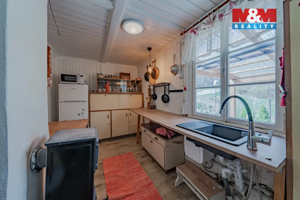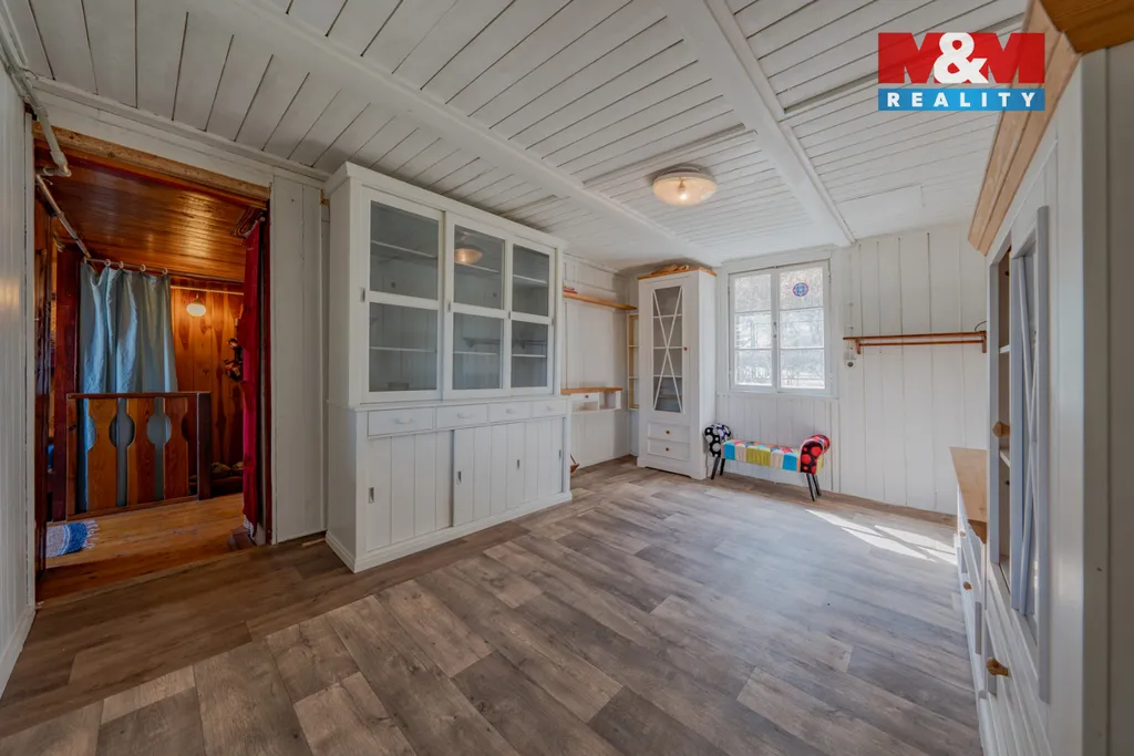 Nabízíme k prodeji dvoupodlažní zařízenou chatu 4+1 se svažitou zahradou o výměře 340 m2. Do chaty je přiveden elektrický proud a obecní vodovod, vytápění řešeno kamny na tuhá paliva, WC suché mimo chatu. Přístup po zpevněné cestě přes cizí pozemky. Nachází se na polosamotě u lesa s výhledem do údolí řeky Bečvy. Doporučujeme prohlídku, více informací u makléře.