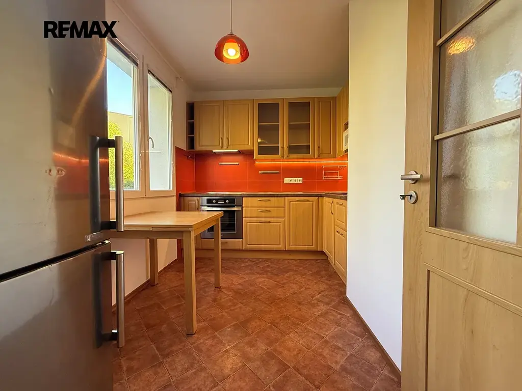 Byt nabízí praktické dispoziční řešení s neprůchozími pokoji. K dispozici je prostorná vstupní chodba, kuchyně s jídelním stolem, obývací pokoj, ložnice, dětský pokoj, koupelna a samostatná toaleta, k dispozici je také vlastní místnost v mezipatře která slouží jako úložný prostor. Byt zůstává vybaven kuchyňskou linkou včetně indukční desky, horkovzdušné trouby, mikrovlné trouby, ledničky a pračky. Parkování je dostupné přímo před domem. Veškerá občanská vybavenost je samozřejmostí včetně pár minut chůze vzdáleného dopravního spojení tramvaje číslo 4, nebo autobusu číslo 22, 30, 32, 29. Dálnice D5 je dostupná do 5 minut jízdy autem.