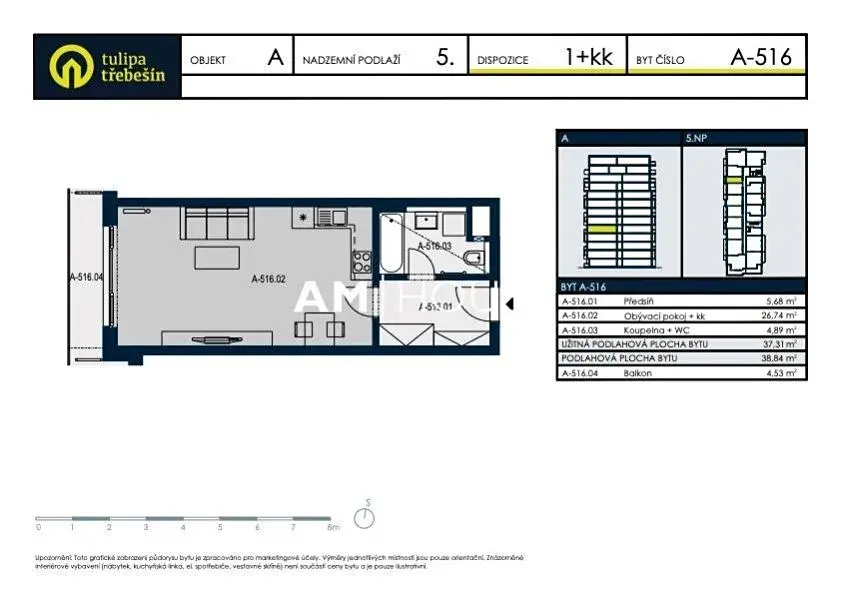 Nabízíme k pronájmu byt 1+kk o velikosti 38 m2, který se nachází v rezidenci and #34;Tulipa Třebešín and #34; ve vyhledávané lokalitě na Praze 3, ul. Zvěřinova, Strašnice.